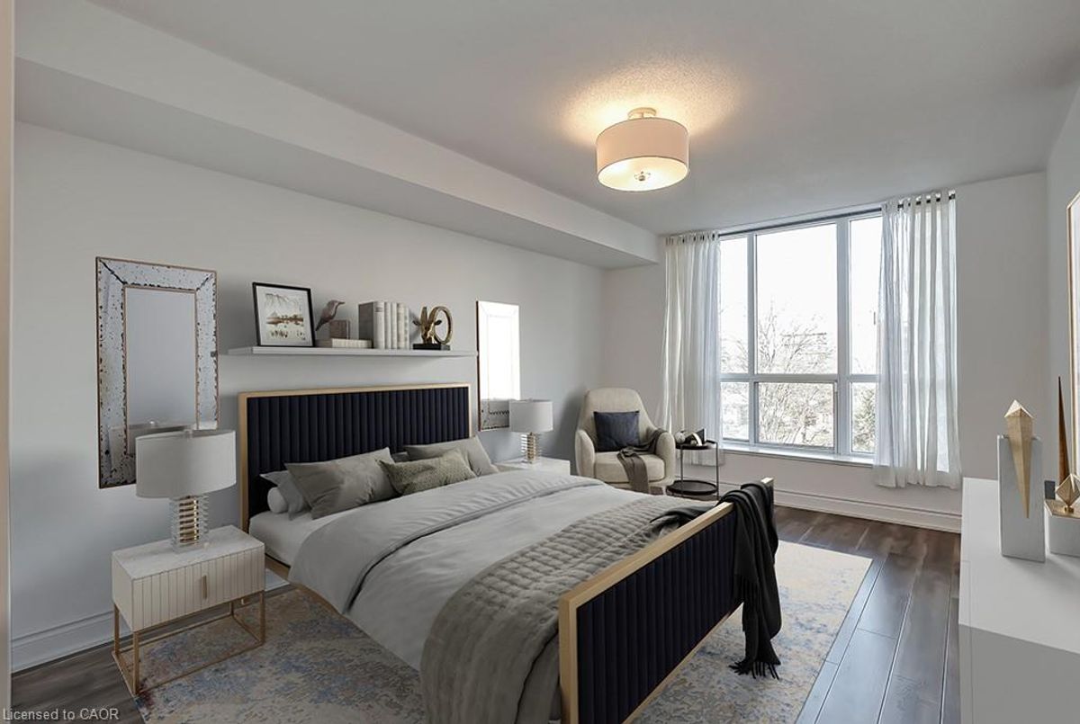 Lovely 2 bedroom, 2 bathroom condo in highly sought after Spencer’s Landing, offering 978 sq. ft. of living space just steps from the lake and downtown Burlington. This unit features wood look flooring, an open-concept living and dining area with a walkout to a large balcony, perfect for relaxing or entertaining. The kitchen has granite countertops, a breakfast bar, and stainless steel appliances. The spacious primary suite includes a walk in closet and 4-piece ensuite with soaker tub and separate shower. The second bedroom also offers balcony access, and a three piece main bath and in suite laundry completes this great unit. In-door swimming pool, jacuzzi, gym, party room, concierge make this building a great place to live. Ideally located within walking distance of Spencer Smith Park, Burlington Beach, the Art Centre, and the vibrant downtown core, this home is close to all amenities, dining, and shopping, with quick highway access. AAA+ tenants only